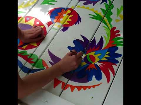 Расписываем детскую песочницу. Самчиковская роспись. Ukrainian decorati...